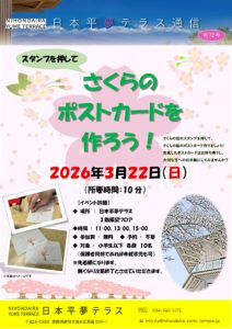 場所 : 日本平夢テラス 3階 展望フロア 参加費 : 無料 (予約不要) 対象 : 小学生以下 先着順(各回10名様)